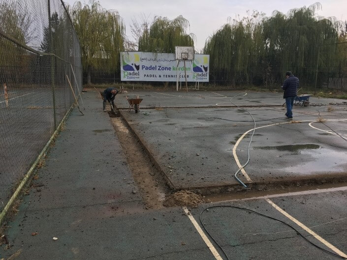 زیرسازی چمن مصنوعی بهروش سطح سخت یا بتن برای زمین پدل